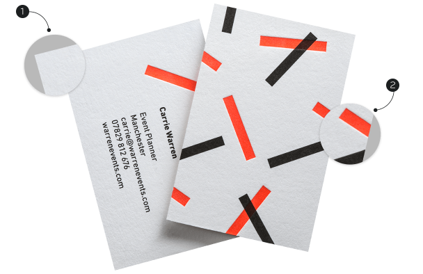 Letterpress printing is a traditional craft technique that uses a printing press to create relief patterns on paper or other materials. We hand press each card to give them a unique, distinctly crafted look and feel. And to make our debossed business cards even more luxurious, we combine letterpress with digital printing for a perfect finish.