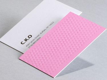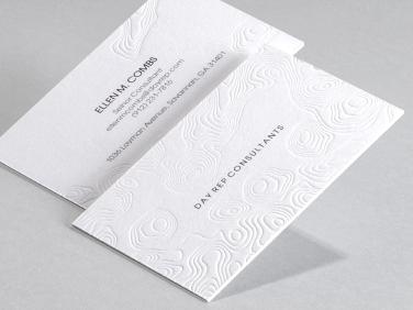 Embossing and debossing are two sides of the same coin. While embossing is the process of creating raised relief patterns, debossed card designs are recessed images, sunken into the paper.
