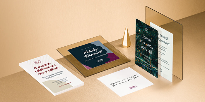 It’s a good idea to promote any discounts or special offers early on so that customers can allocate their gift budget. Social media channels like Facebook and Instagram are helpful, particularly if you have new product photos to share. You can also take it offline with Flyers, Postcards or custom, printed gift tags, equally great for adding to customer packages or distributing locally as a way to keep customers in the loop about seasonal discounts or new products.