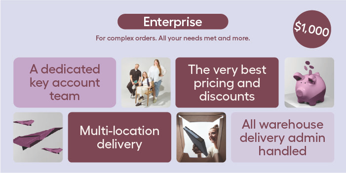 For the busiest, large businesses, Enterprise offers our top level of hands-on support to handle the biggest and most complex orders.