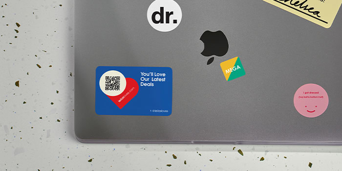 A Postcard drives someone to your website. A QR code on a Business Card connects to your LinkedIn. A Sticker on a laptop reminds someone to check your Instagram.