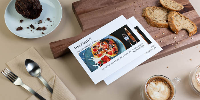Keep the conversation going after the event with printed takeaways for attendees. Business Cards are a staple for any exhibition stand, but you can also level up your marketing material by creating a Menu that showcases your festive dishes, or if you’re selling products, a Flyer packed with gift inspiration.
