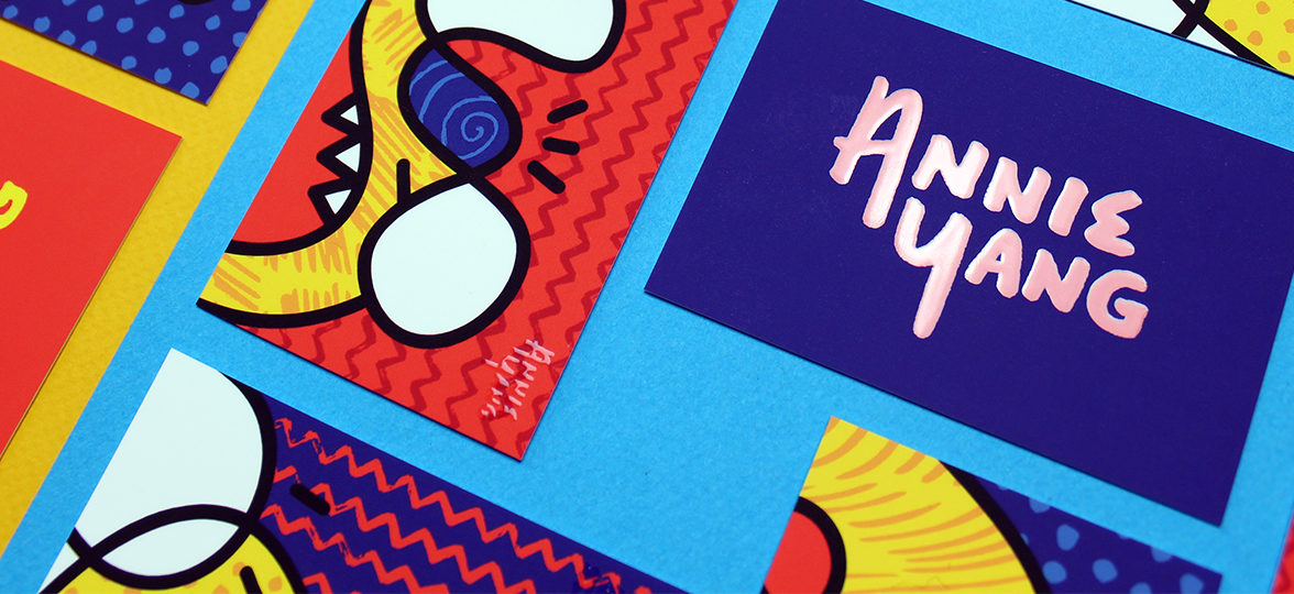 Born and raised in New York City, graphic designer Annie Yang incorporates wit, colour and playfulness into her work, which she creates for non-profit organisations around the world. Her original spot UV business card designs reflect her bold and creative visual identity.