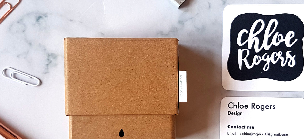 Als sie ihre Karten erstellte, wollte Chloe ihnen eine konsistente Markenidentität geben, die sie und ihr Medium reflektiert: „Ich habe einen handgeschnitzten Linolstempel mit meinem Namen designt. Ich drucke meinen Stempel auf Papier und scanne ihn ein, um eine digitale Druckvorlage zu erstellen, die ich dann bei MOO hochlade. Ich wollte einen robusten, organischen Look erzielen, der meine Einflüsse und die Prints, die ich mache, repräsentiert.“