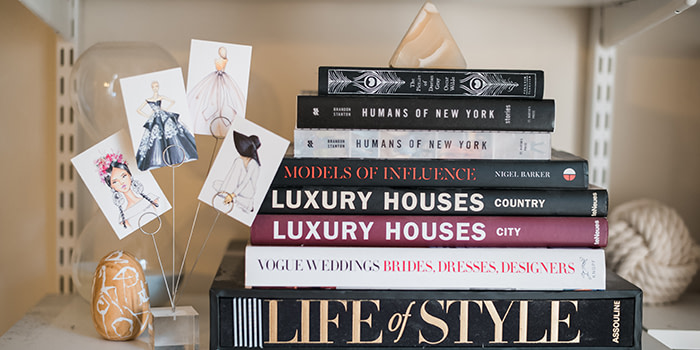 ¡Aún me cuesta creer que haya ilustrado tantos libros! La mayoría son libros de moda pero he trabajado también en algunos cuentos infantiles. El proceso es similar a los encargos habituales. Primero hago los esbozos en lápiz para que la editorial o el autor los revise y a continuación me pongo con las ilustraciones finales a todo color. Para Chloe by Design, la serie para jóvenes adultos que ilustro, el proceso ahora es mucho más rápido. Apenas hay modificaciones puesto que ya he hecho unos cuantos títulos de la saga y me dan libertad creativa completa. Desde la primera edición, también me han pedido que asesore sobre la historia y los diseños de moda al inicio del proceso de redactar el manuscrito por mi experiencia en el mundo de la moda, ¡y me encanta!