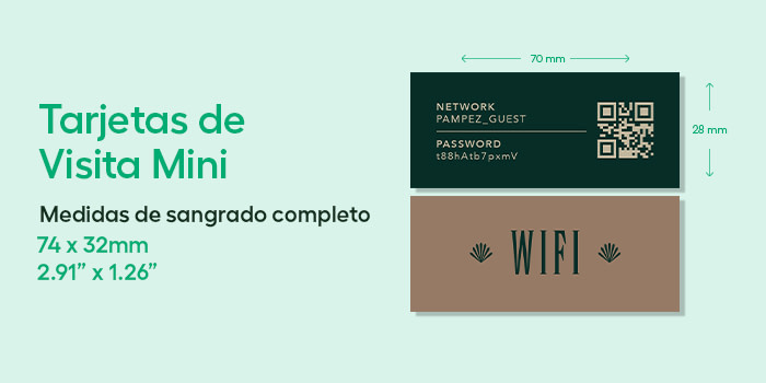 Si buscas las medidas de nuestras famosas MiniCards MOO, estas son 28 mm x 70 mm o 1,1″ x 2,75″.