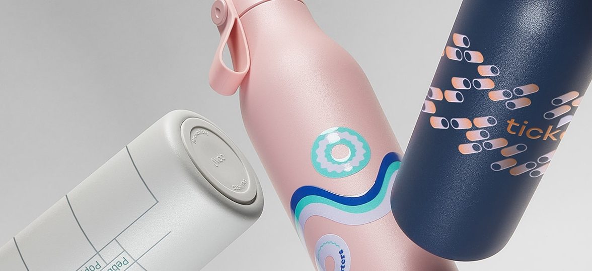 - Présente bien. Vous pouvez personnaliser votre bouteille en y ajoutant le logo de votre marque, vos illustrations, slogan, mascotte et bien plus encore. Et elle est disponible en 4 couleurs ultra-fraîches : Noir de jet, Bleu nuit, Vert sapin et Rose poudré.