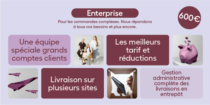 Pour les entreprises de plus grande envergure, notre abonnement Grande entreprise propose un niveau supérieur d’assistance pratique pour traiter les commandes les plus volumineuses et les plus complexes.