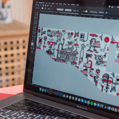Selon si le projet est plutôt fluide ou très encadré, soit je commence par assembler des formes sur Illustrator, soit je réalise des esquisses. À ce moment-là, le client m’envoie ses commentaires et je modifie mon illustration ou bien je réalise davantage d’esquisses. Une fois que tout est finalisé, je réalise la version finale et je prépare les fichiers pour le client.