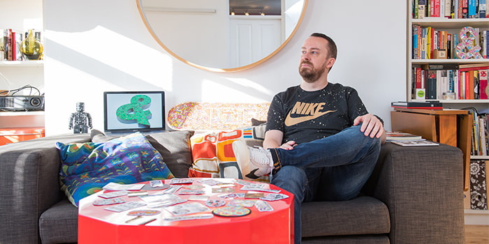 Influencé aussi bien par le kitsch urbain que la nature ou encore les néons, Tim Easley dispose d’un portefeuille de clients impressionnants, parmi lesquels Nike, BBC, Etsy et Disney. Comment est-il passé de disquaire à artiste pour Nike ? Et continue-t-il de développer cette impressionnante carrière de freelance depuis son canapé ?