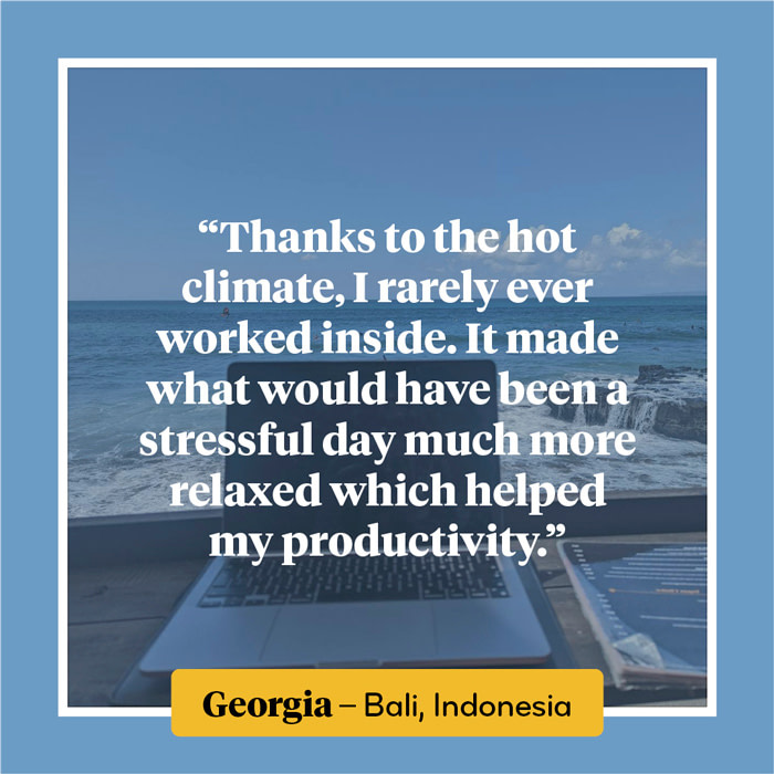 I went to Vietnam, Indonesia, and Singapore but I only worked from Bali. I was traveling when the pandemic started so I missed out on visiting Bali, North Vietnam, and Singapore. I decided to use Work From Anywhere to finish my trip. I’d also heard that Bali is a hot spot for digital nomads, so I wanted to see what all the fuss was about.