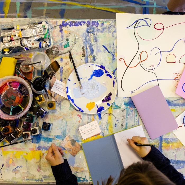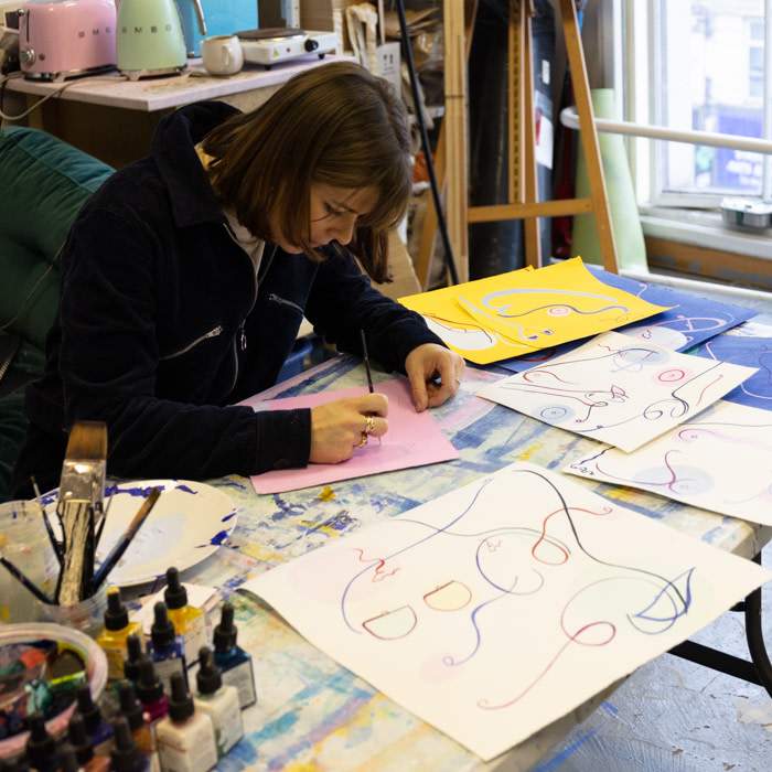 There’s something beautiful about returning to the roots of art — the simple drawn line; it can be so evocative and open to interpretation. When working in portraiture I was always focused on layering paint and using lots of it. As I’ve focused more on the female form, I’ve loved bringing back the simplicity of the line in my work; marrying together painting and drawing throughout the process.
