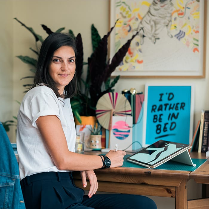 Per me, l’app Procreate per iPad è uno strumento straordinario! Ha cambiato il modo in cui lavoro e mi ha fatto risparmiare tanto tempo sui progetti. Da quando la uso, ho accesso a così tante opzioni e possibilità nella creazione di lettere che non credo avrei mai scoperto lavorando su carta e poi scansionando i disegni su Illustrator. Avere la possibilità di perfezionare, testare e modificare i miei design su tablet è molto utile, specialmente quando sono fuori dallo studio e devo fare dei cambiamenti per i clienti. Noto che sempre più illustratori e pittori lo usano e capisco perfettamente il perché, io uso il mio iPad solo per questo.