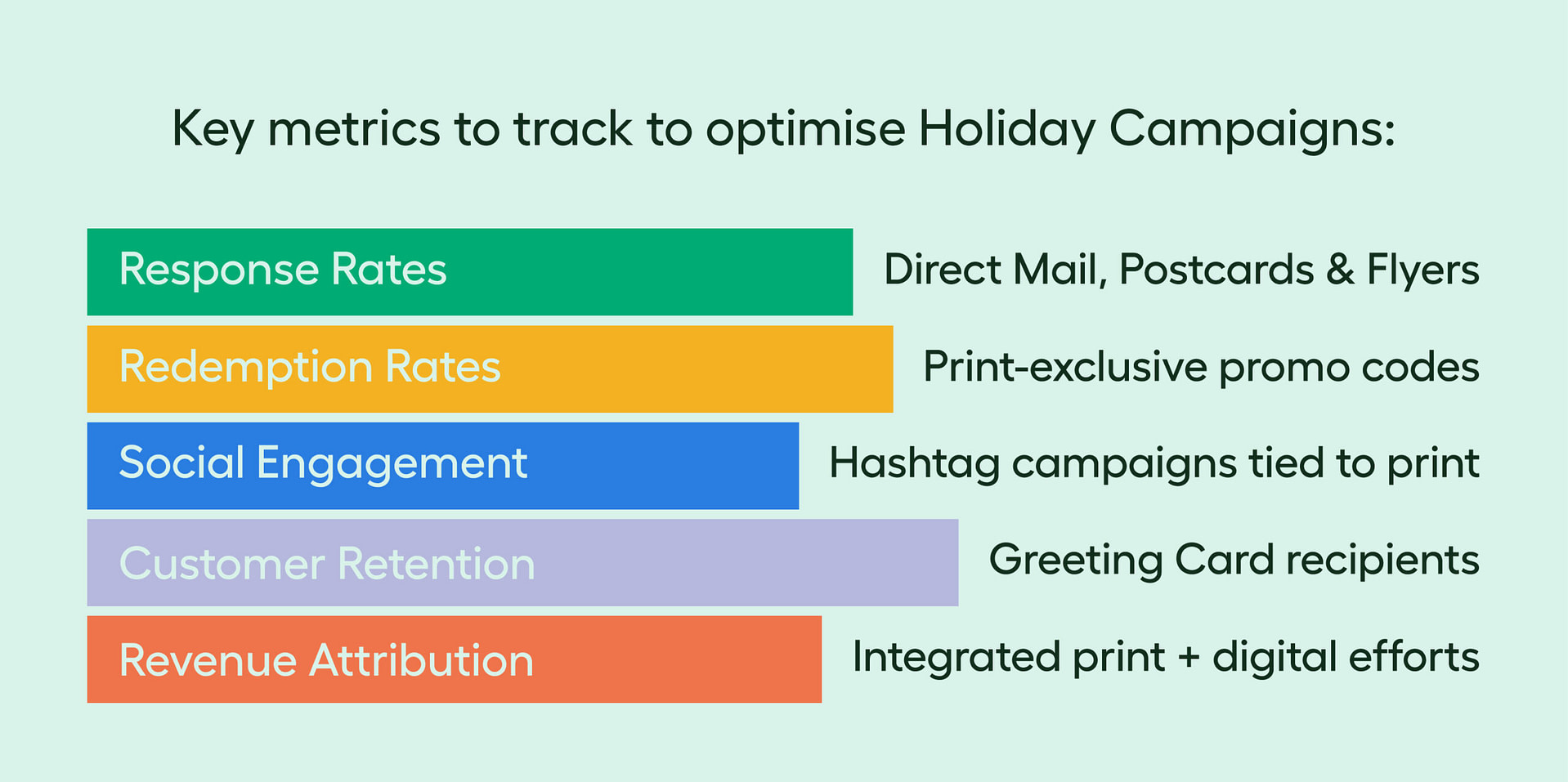 Compare these against your purely digital efforts to understand print’s true ROI during the holiday season.