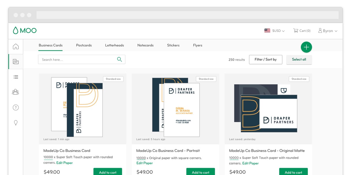 Treat your team to a MOO Notebook – customized with your brand’s logo, colors and graphics. And oh yes, you can foil it too. Minimum order of just 10.