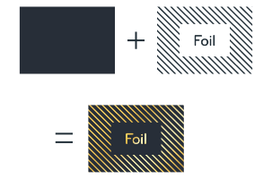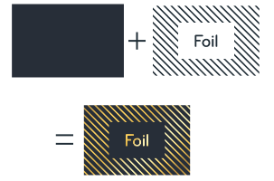 Create Two files. One for the artwork, one for the Foil. The artwork file will house the main design image. CMYK color file in PDF, PNG, JPG, or GIF format. The element file will define where the element is applied on top of your design. B&W PDF file only.