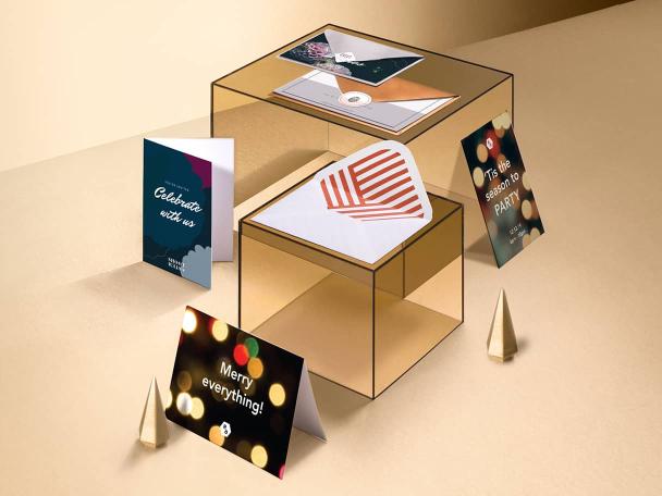 Weihnachtskarten sind eine tolle Gelegenheit, den Kontakt mit Ihren Kunden zu pflegen. Besonders, wenn Sie sie mit Printfinity personalisieren. Diese exklusive Funktion von MOO ermöglicht Ihnen, jede Karte in einem Päckchen mit einem anderen Bild zu gestalten.