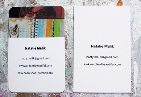 Meet Natalie Malik – an artist, art blogger, and barista. She's a loyal MOO customer and author of Awkward and Beautiful, who uses her designs on her cards to network with other bloggers.