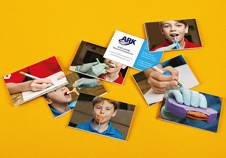 ARK Therapeutic a trouvé des idées brillantes pour utiliser ses cartes. Et nous adorons cette idée de représenter leurs outils colorés en pleine action avec leurs clients ! Envie de faire pareil pour votre entreprise ? Jetez un œil à nos Cartes de Visite et à notre option Printfinity.
