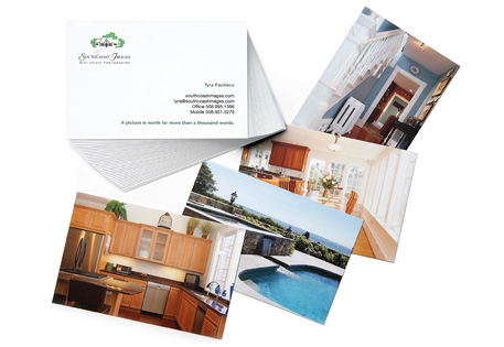 When someone asks for your card, take the opportunity to fan out a selection - each showing a different piece of your work. It works for real estate photographer Tyra Pacheco...
