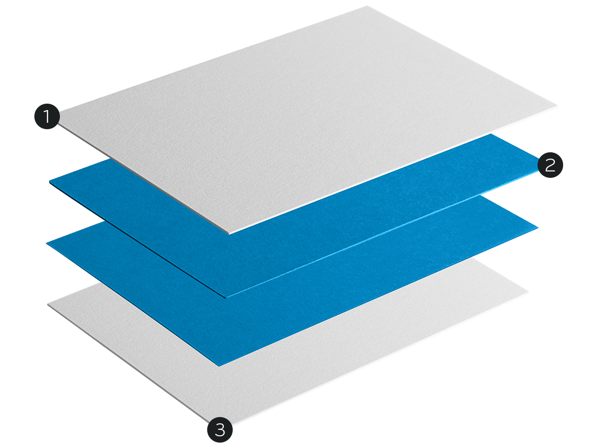 Come tutte le storie più belle, anche questa ha molti strati. Inizia con un cartoncino di alta qualità: Mohawk Superfine. Rinomato per la resa uniforme con la stampa digitale, è la superficie ideale per i tuoi design. Nel mezzo, c'è una cucitura di doppio spessore colorata. Più un altro strato di Superfine. Poi i diversi strati sono pronti per essere fusi insieme per creare biglietti lussuosi ed extra spessi. Quattro strati. Un'esclusiva collezione di cancelleria.