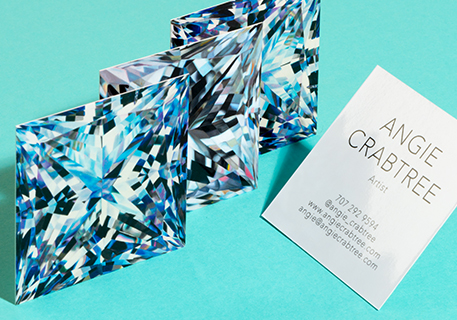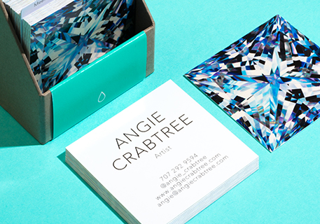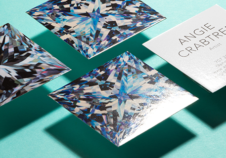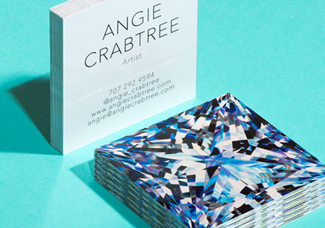 To add an extra sparkle to the promotion of her latest series of paintings, Angie chose to produce a collection of stunning Square Business Cards using our Super Gloss finish. And boy do they shine bright.