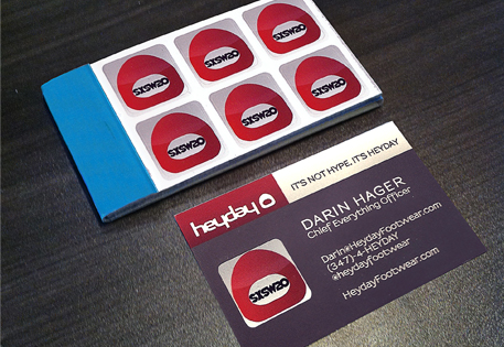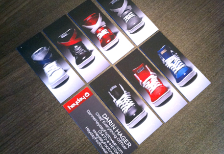 When MOO went to SXSW, we met Darin Hager, the awesomely cool and really charming “chief everything officer” of Heyday Footwear, and a serious businessman who understands the power of all- angles marketing.