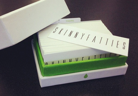 Joshua uses MiniCards for his role as founder of SKINNYFATTIES, and recently ordered some more with customer support information on them to hand out with purchases. They also use customised MiniCards as sales tags. "They're perfect for someone in the business of making fat things skinny! As I network and hand cards out, I'm usually telling the SKINNYFATTIES story. These cards connect my brand with a narrative and people like that."