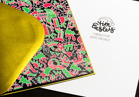 The next step involves a bit of help from social media. Tim plans on hand-drawing doodles in each card and sending them off to any one of his Twitter followers who feels like getting a free card and a one-of-a-kind message. It’s a great way to engage with his followers and potential clients, as well as have a bit of fun undermining your ‘average’ holiday designs. Want to get your hands on one? Simply give him a shout – it’s @TimEasley.