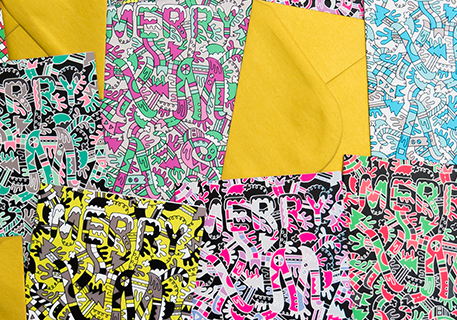 While all of Tim’s uses (and compliments!) brightened our day, what we really enjoyed was his clever method for sending out his Christmas Greeting Cards to his friends and fans. Tim started out by creating a series of Christmas designs in his own quirky, vivid style - “I quite like it when nobody understands what I’ve done or can’t read one of my pieces, like with these X-mas cards.” Normally a description like that might put you off, but just one look at the result, and you’ll understand why it’s so perfect for a lively time like Christmas!