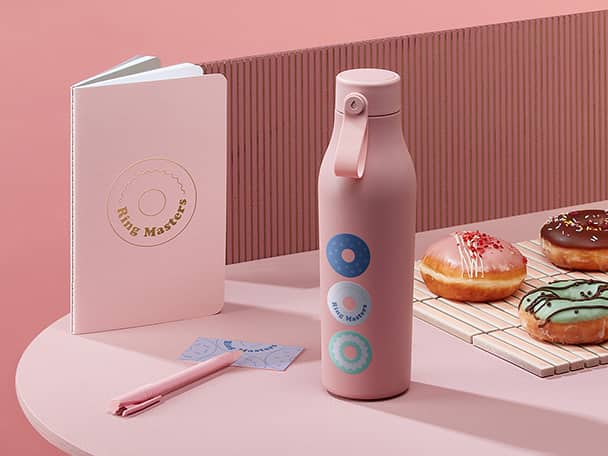 The MOO Water Bottle is made to be customized. You can add your brand’s logo, colors, illustrations, tagline, mascot – or do something completely different. It’s your drinks bottle. (Well, until it’s on the desks of all your colleagues, of course.)