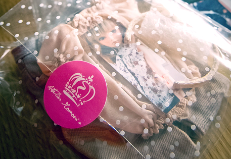 Atelier Momoni is the business of Lola Palacios, who makes quality handmade doll clothes. She draws and designs her own patterns, and imports material from Japan to ensure that her client’s dolls are dressed to impress. Each item is wrapped in pretty printed clear plastic, complete with a MiniCard of a doll, StickerBooks, and sealed with a pink Round logo sticker. “Recently, I’ve been making MOO stickers to fit the patterns, colors and designs of the clothes, making the packaging part of the set.” she tells us. Makes you want to unearth your old doll collection, doesn’t it?