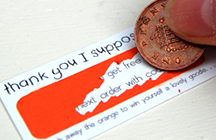 E-shop owner and fellow paper peddler, Laura Clempson, found a crafty new way to use our MiniCards: scratch and reveal deal cards for her customers.