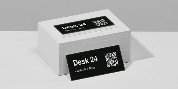 MOO has been selected as Crestron's approved supplier to offer premium quality desk placards that fit seamlessly into the Desk Q.